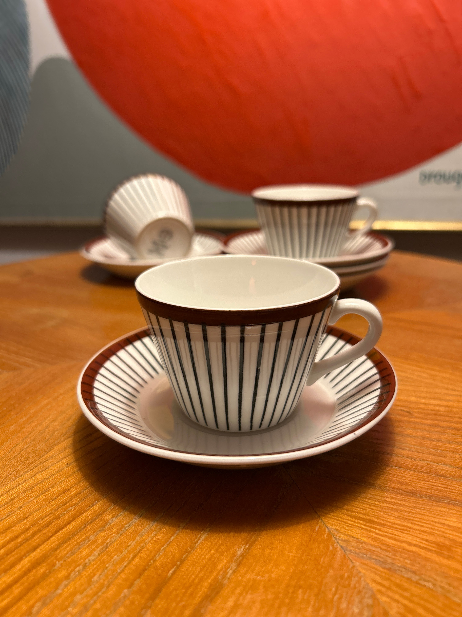 Olika delar i mycket fint skick. Ex: Mattallrik 24 cm 225 kr Djup tallrik 225 kr Tekopp m fat 225 kr Kaffekopp m fat 150 kr